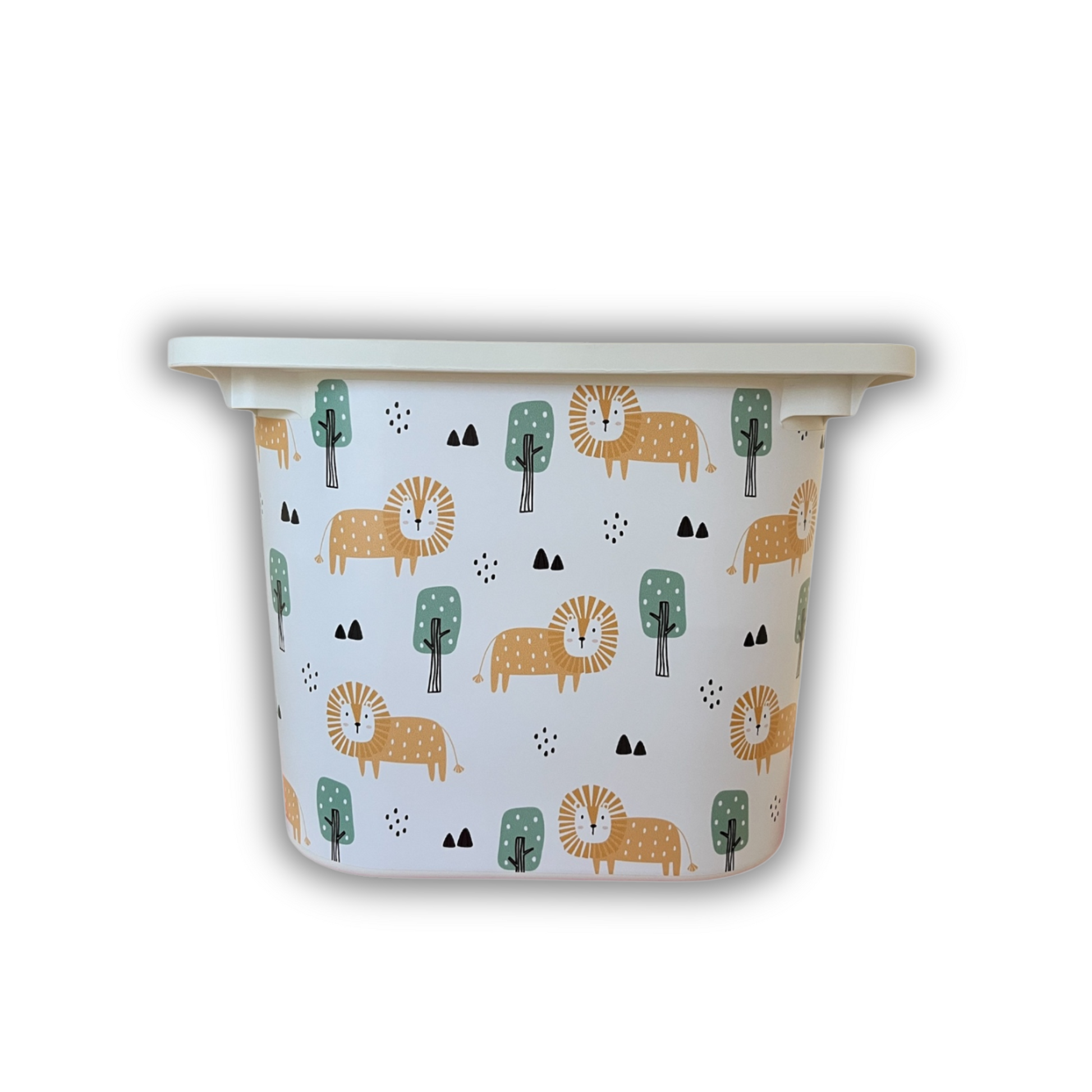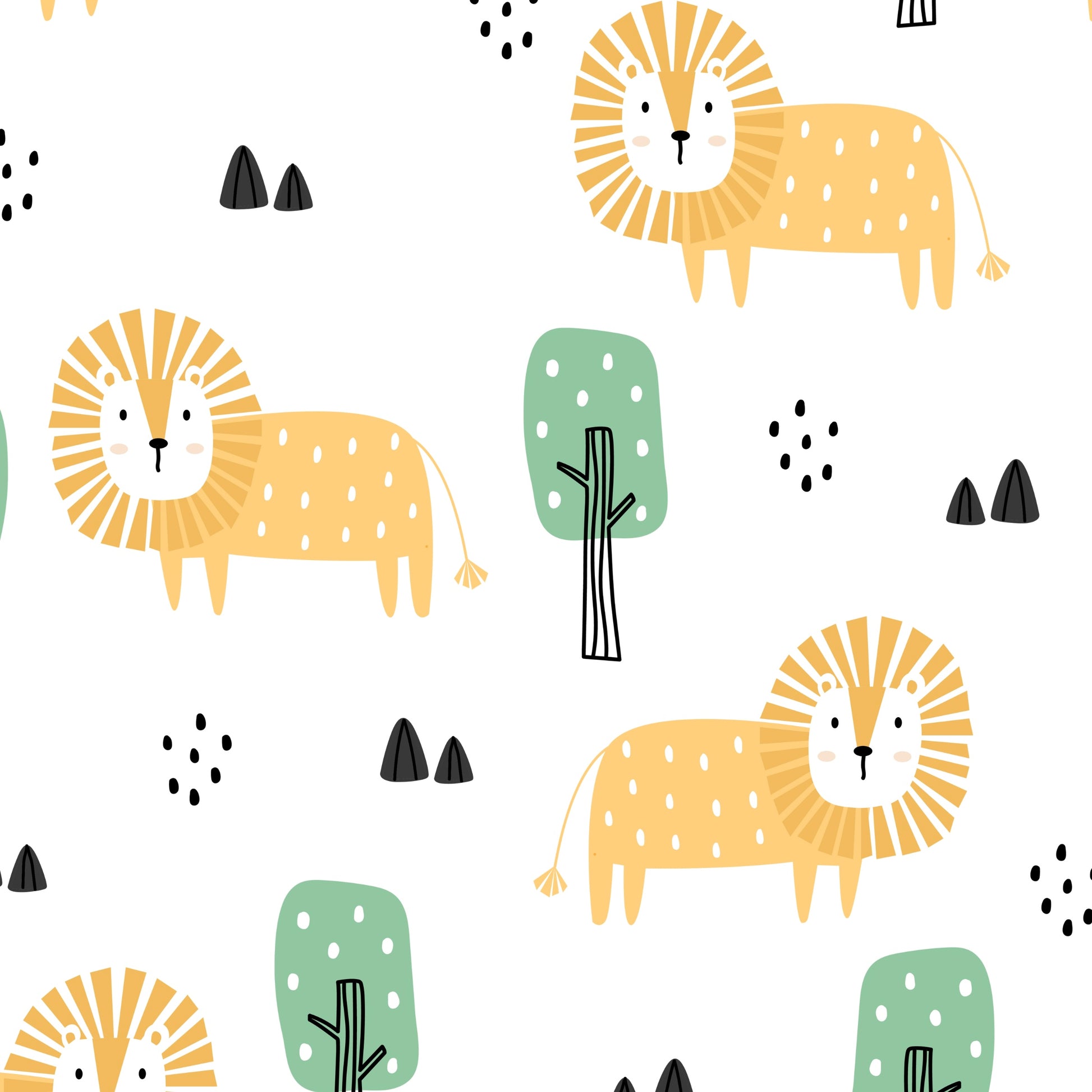 Encantador estampado de leones y árboles en tonos suaves. Ideal para aportar un toque alegre y lleno de aventura a la habitación de los más pequeños.
