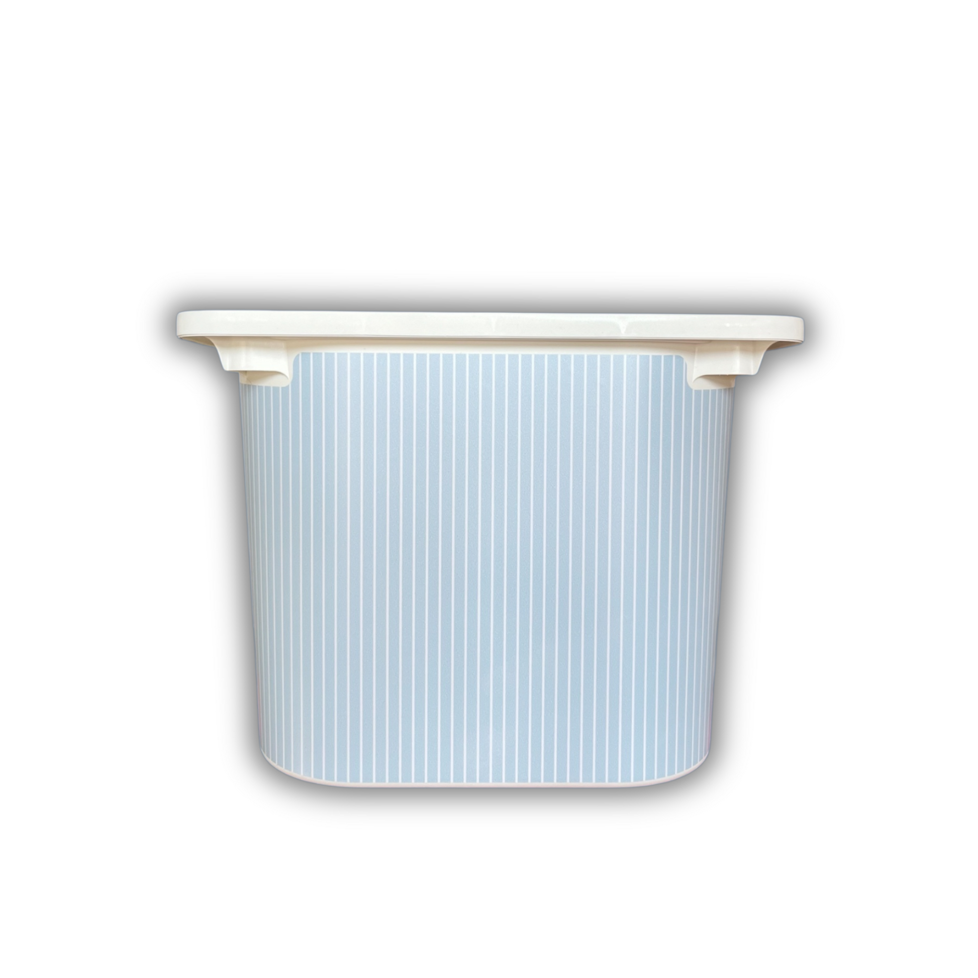 Elegante estampado de finas rayas blancas sobre fondo azul. Perfecto para aportar un estilo clásico y fresco a la habitación de los más pequeños.